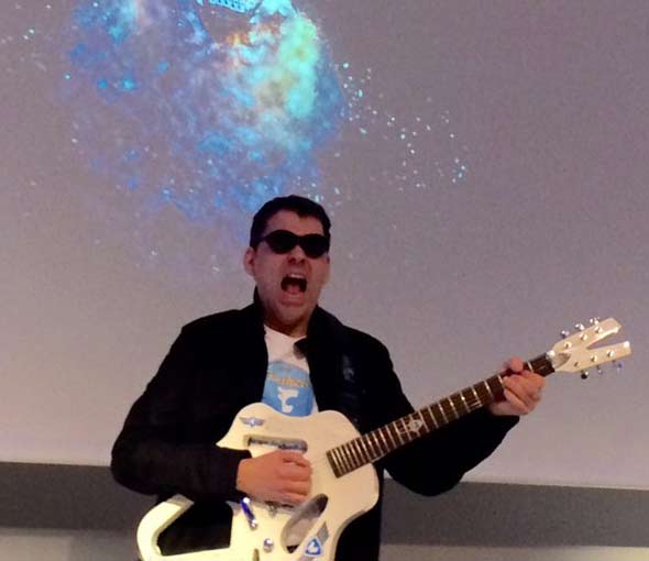 Manchmal kommt auch ein ungewöhnliches Outfit dazu. Letztlich ist Musik auch Entertainment. Meine Kenntnisse aus 28 Jahren Marketing fließen da auch mit ein.